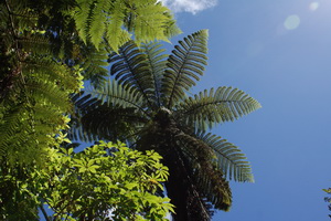 Pláže jsou sice hezké, ale nikdy nás nebaví víc než půl dne. A tak jsme vyrazili s batohem na zádech na dvoudenní trek do srdce subtropického deštného pralesa Puketi – jednoho z nejrozlehlejších pralesů na Severním Ostrově. Bohužel jsou naše znalosti fauny a flóry dosti mizerné, a tak nejsme schopní dost dobře popsat, co všechno jsme viděli. Ale pokusíme se... Puketi je proslulý obrovskými stromy zvanými kauri (kdo zná český název, nechť se nám ozve!). Největší kauri jsou staré až 600 let, dosahují výšky 50 m a obvod kmene při zemi mají až 16 m. Zatímco původní obyvatelé Maorové je považovali za posvátné, a tedy nedotknutelné, běloši je vesele káceli (kdo jste viděli film Avatar? – docela podobné, že?) a využívali jejich dřevo na stavbu lodí a domů – z jednoho stromu bylo možno nařezat trámů na celé 2 domy (domy jsou tu nízké, jen přízemní - kvůli častým zemětřesením, ale i tak je to obrovské množství dřeva). Dnes jsou kauri přísně chráněné a patří mezi národní bohatství. Kauri a ostatní zde rostoucí subtropické dřeviny poskytují příbytek četnému hmyzu, ptákům, kterých je tady požehnaně, od všemožně barevných papoušků až po kiwi, drobným hlodavcům, hlemýžďům... Dokonce jsme našli stejný (anebo velmi podobný) lišejník jako v Norsku za polárním kruhem – jak je to možné, to nevíme (nafotíme a pošleme na konzultaci našim kamarádům botanikům).