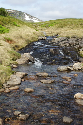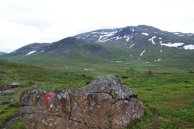 Cesta vedla podél úbočí 1220 metrů vysoké hory, kterou jsme se v prostřed dne rozhodli zdolat. Počasí bylo mírně umoudřené, a tak jsme se vydali pouze nalehko podél dlouhého vodopádu na nedaleký, asi 500 výškových metrů vzdálený kopeček. Nečekali jsme, že příroda tu bude tak rozmanitá. Ve spodní části údolí byla spousta jezer, v horních částech začínal sníh a kamení. Byla tu k vidění spousta kytek a také pár sobů. Začal foukat prudký vítr a my s větrem v zádech stále stoupali nahoru k vrcholku. Vítr začal sílit a v dálce jsme viděli, že se na nás žene déšť. Těsně pod vrcholkem vítr dosáhl takové intenzity, že již nešlo stát, museli jsme se plazit nebo lézt po čtyřech, aby nás to nesfouklo. Asi 10 výškových metrů před vrcholkem jsme to vzdali, boť bychom odletěli z vrcholku někam daleko dolů do údolí. Tento výstup bychom mohli nazvat také „výstup na kopec, kde voda teče nahoru“: vítr byl tak silný, že vodu v potůčku vyfoukával proti proudu tak silně, že se opravdu vracela. Byl to silný zážitek a my na lehko odění jsme trochu prokřehli. O to rychleji jsme klesali dolů. K báglům jsme dorazili právě ve chvíli, kdy začínalo pršet. Nasadili jsme si pláštěnky a pokračovali do sedla (zhruba 800 metrů n.m.). V sedle nás čekaly dramatické výhledy, které jsme nemohli zachytit na fotoaparát díky škaredému počasí. Jelikož bylo hodně deštivo a také proto, že v tomto národním parku je množství bažinam, jsme měli mokro v botách, ale naštěstí ostatní partie těla byly suché.