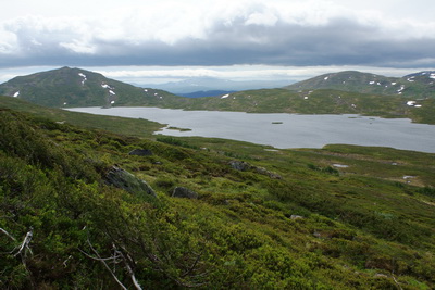 Další den jsme se posunuli dále k Schulzhytě, kde jsme potkali páreček Norů. Pán nesl kyblík a po rychlém průzkumu jsme zjistili, že je to on, kdo značí tyto stezky. Pěli jsme mu mnohé díky za perfektní značení a on byl dojat. Kolem této uzamčené chaty jsme se chvilku zdržovali, a pak jsme se přesunovali více na východ. Cestou nás otravovala hejna komárů a dvoucentimetrová hovada. Cestu k východu bychom mohli nazvat cestou tisíce a jedné bažiny. Pak jsme narazili na řeku, a protože bylo slunné, krásné počasí, oba jsme se vykoupali, umyli vlasy a dali si dobré české pivo, které nám Chodí a Lutawin dovezli z Čech. Začalo se nepříjemně ochlazovat, ze zhruba 20 stupňů náhle klesla teplota na 6 a obloha se zatáhla. Sice nepršelo, ale zima byla vydatná. Dorazili jsme zpět k jezeru Finnkoisjøen. Už byl večer, a tak jsme se rozhodli nalézt místo u jezera a další den si v klidu dojít k autu. Šli jsme podél úplně jiné krajiny, než byla dopoledne. Byly zde zatravněné morény, plno jezírek kolem centrálního jezera, a také zde bylo mnoho ptáků, které jsem měl možnost fotit za letu. Nečekaně uprostřed divočiny na nás vybafl setter s nádherným prostranstvím a výhledem na jezero. A tak proč u něj nepřespat, že? Rozbili jsme tábor a užívali si výhledu na jezero a protější zamlžené kopečky. Začalo pršet a my jsme byli rádi, že si na verandě toho setru můžeme nechat usušit boty a nějaké oblečení.