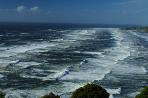Jelikož cesta k autu vedla kolem Punakaiki Rocks (Palačinkových skal), stavili jsme se tam znova. A dobře jsme udělali. Byl totiž příliv, vlny se tříštily o skály, v některých místech to vpadalo, jakoby tam tryskal gejzír (když silná vlna vyšplouchla skrz malé okno ve skále). Jen těch turistů tam bylo poněkud víc než včera.